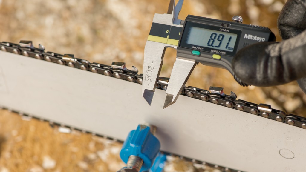 La dent de coupe la plus courte peut généralement être déterminée visuellement. Si vous affûtez la chaîne de tronçonneuse chez vous ou à l’atelier, vous pouvez également utiliser un pied à coulisse.