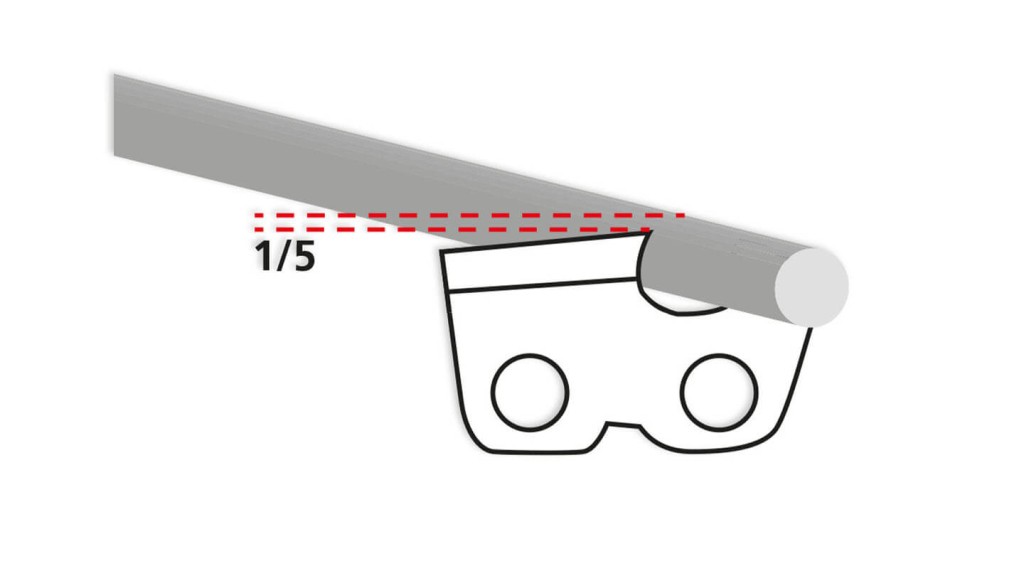 Lors de l’affûtage de la chaîne de tronçonneuse, le diamètre de la lime doit dépasser de 1/5 (20 %) le toit des dents. La lime est guidée horizontalement à un angle de 90° par rapport au guide-chaîne. L’angle d’affûtage recommandé est de 30°.