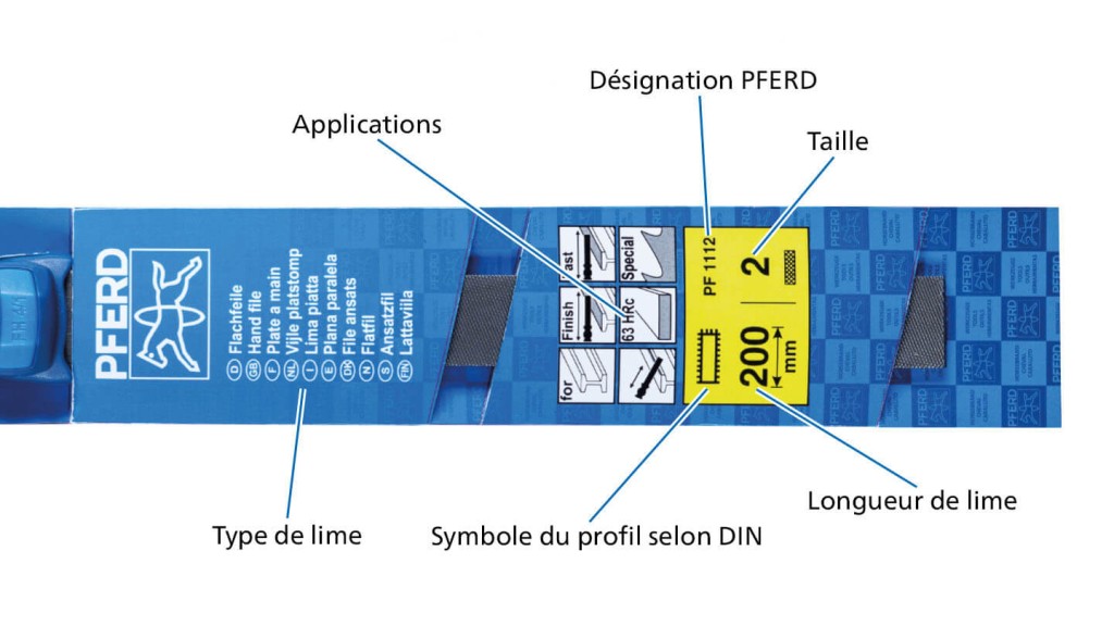 Sur les emballages pour point de vente de PFERD TOOLS, vous trouverez toutes les informations importantes concernant votre outil de limage.